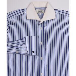 Ted Baker Mens Blue White Striped French Cuff Dress Shirt (39) 15.5-34