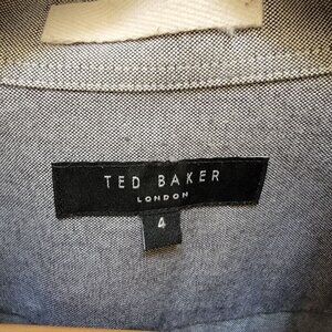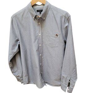 Ted Baker Mens Button-Up Shirt Gray Long Sleeve Oxford Style W/ Embroidered Logo