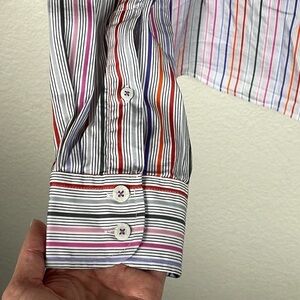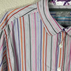 Ted Baker Mens Colorful Rainbow Candy Stripe Long Sleeve Button Front Shirt Sz 6
