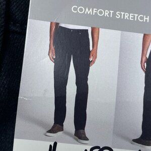 Men's black slim-fit jeans with comfort stretch fabric featuring a 36x29 size, made of durable cotton-spandex blend for added flexibility and comfort.