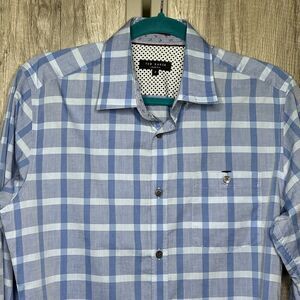 Ted Baker Mens Dress Shirt Blue Check Long Sleeves Size 3