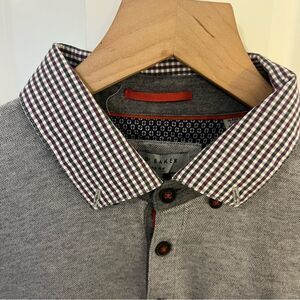 Ted Baker Men’s Grey polo with plaid Collar detail Size 4 or Large