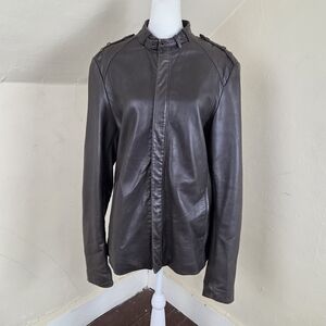 Ted Baker Men’s Leather Moto Brown Jacket Size 3 (M)