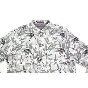 Ted Baker Mens Long Sleeve Shirt Grey White Floral size 17 Fashion Fit - 944