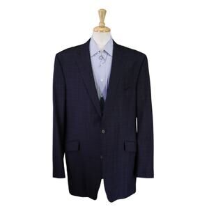 Ted Baker Mens Navy Blue Subtle Checkered 2-Btn Wool Blazer Jacket 50XL