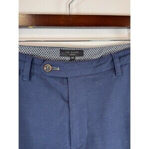 Ted Baker Mens Pants Blue Chino Linen Straight Slim Fit Flat Front Stretch 32x31