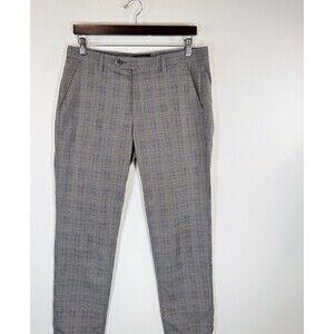 Ted Baker Mens Pants Gray Chino Straight Slim Fit Plaid Flat Front Stretch 32x28
