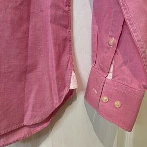 Elevate your wardrobe with this stylish pink Ted Baker dress shirt. Perfect for any occasion, this shirt offers a classic fit and a vibrant color that stands out. The details are stunning on this shirt. It is in excellent preowned condition.