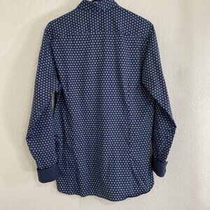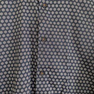 Ted Baker Mens Polka Dot Button-Up Shirt Size 4 Navy Blue Long Sleeve Cotton