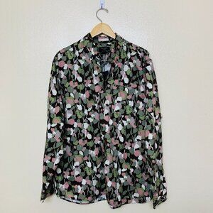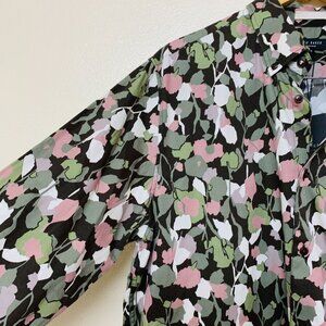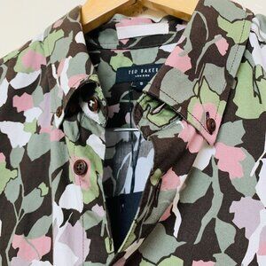 Ted Baker Poplar Long Sleeve Abstract Floral Print Shirt Sz 5/XL Brown