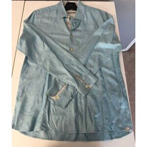 Ted Baker Mens Size 5 (LG) Blue Linen Cotton Button Up Long Sleeve Dress Shirt