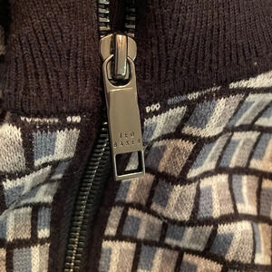 Ted Baker Mens Teeflow Geometric T Print Zipped Knit Cardigan Sweater 4=L