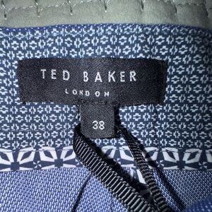 Step up your summer style with these sharp Ted Baker mini dot shorts in a deep indigo blue. Crafted with attention to detail, they feature a subtle micro-dot pattern, front and back pockets, zip fly with button closure, and a modern tailored fit. Lightweight and breathable—perfect for warm-weather outings or smart-casual looks.