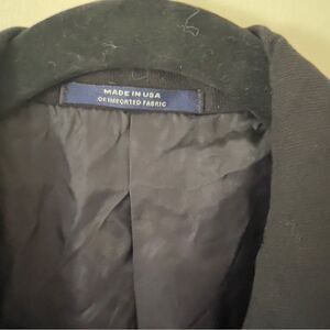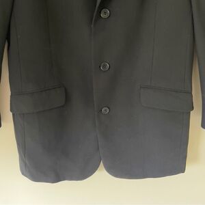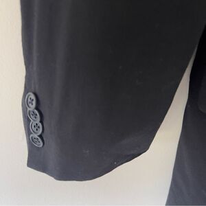 Ted Baker Men’s Black Three Button Blazer Jacket. Size 40. Mid-Weight. Two front flap pockets, two inner pockets. Does not have material tag. Good used condition.