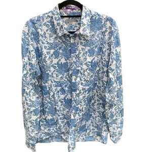 Ted Baker Mens Sz 5/US Blue Paisley Purple Contrast Cotton Button Down Shirt