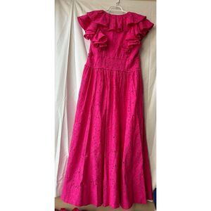 Ted Baker Mirza Ruffle Eyelet Lace V Neck Midi Dress in Bright Pink Size 3