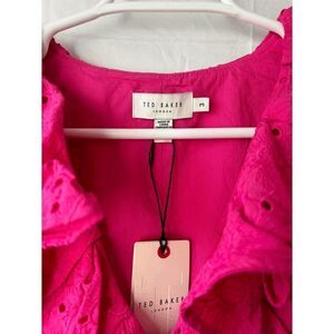 Brand new with tags Ted Baker Mirza Ruffle Eyelet Lace V Neck Midi Dress in Bright Pink Size 3