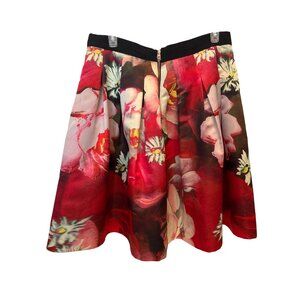 Ted Baker Monny Floral Pleated Skirt US Size 12 A-Lined Exposed Zip Red Pink