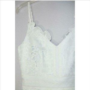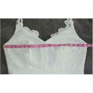 @levans127 the top fabric is like an embroidered lace so no stretch. please see photos of dress with measuring tape as sizing varies from designer to designer and style to style.