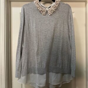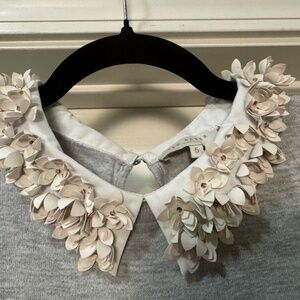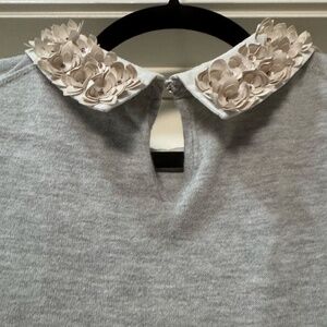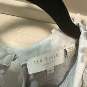 Ted Baker Size 5= U.S. 12 Take your new-season style to the necks level with NANSEA. A lightweight sweater with a faux shirt underneath, its eye-catching embroidered floral collar takes it from a staple to special. Ted Baker womenswear collection Long sleeved Embellished floral collar Faux shirt effect at hem One rhinestone button Silk blend Underarm to Underarm 20" with extra stretch Top of Shoulder to hem front 26 1/2" Excellent Condition