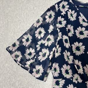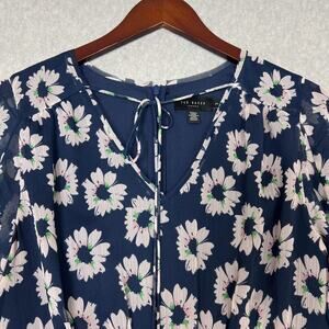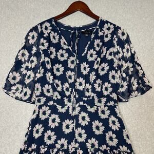 Ted Baker Navy Blue Marllee Floral Flutter Sleeve Tiered Midi Dress Size 2