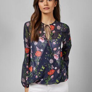 ✨ Keywords: Ted Baker Blouse • Floral Print • Transitional Top • Designer Blouse • Sheer Blouse