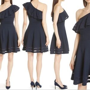 Ted Baker Navy Streena One-shoulder Knit Dress