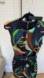 Chic midi dress with bold leaf patterns. Features navy, green, and brown hues. Perfect for stylish outings. Rose gold detail on zipper and belt. Very beautiful, flattering dress! In like-new condition.