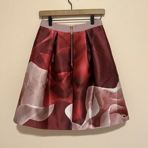 Ted Baker Nell Porcelain Rose Full A-Line Skirt Maroon Pink Women's Size Small