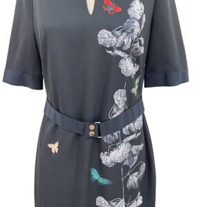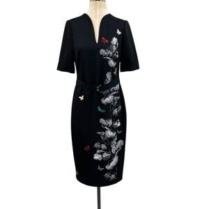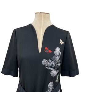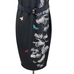 Ted Baker Niliano Narrnia Sheath Dress Buttterfly Floral Print Black Size 3 US 8