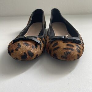 Ted Baker Norha Imitation Leopard Print Bow Pony Hair Ballerina Pump Sz 38 / 7.5