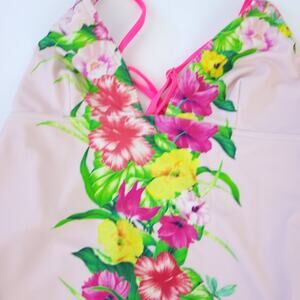 Ted Baker One Piece Floral Swimsuit Size 8 (TB Sz 3) Pink Flowers, Adjust Straps