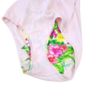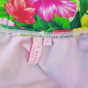 Be the belle of the beach with this stunning Ted Baker one piece swimsuit. Featuring a gorgeous pink and green floral design on a light pink background, this TB size 3 (which translates to a size 8) swimsuit is the perfect addition to any resort wear collection. With adjustable straps for a comfortable fit and a flattering cut, you'll feel confident and stylish all day long.
