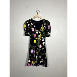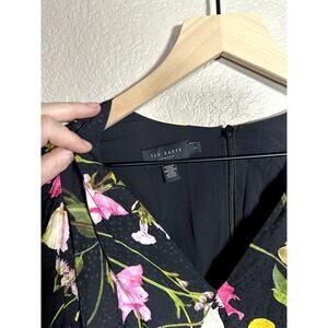 Ted Baker Opallie Floral Black Puff Sleeve Mini Dress Size 1