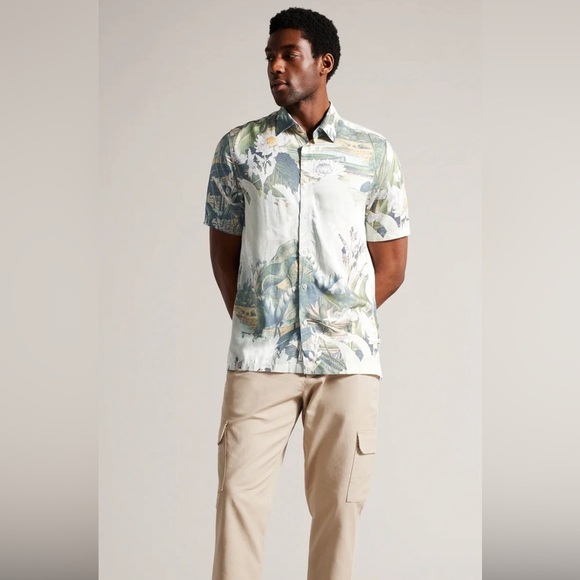 The summer staple you can't leave home without: OULART. This 100% lyocell shirt is perfect for the weekend and warm weather adventures. With a classic collar, short sleeves and our tropical utopia print, it's sure to get the compliments rolling in, whether you're manning the barbecue or lounging in the park.