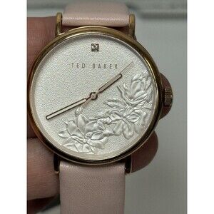 This beautiful watch featuring a floral embossed dial held in rose gold plated stainless steel case and peach pink leather strap is one of its kind from Ted Bakers Pilona watch collection. This time piece is also embellished with a Swarovski crystal to make you stand out and look effortlessly polished all day long. Quartz movement and 1 ATM water resistant.