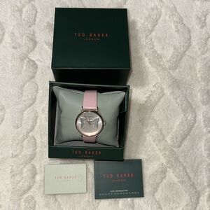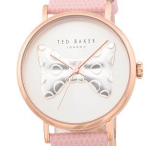 Ted Baker Phylipa Pink Silver Rose Gold Iconic Bow Leather Strap Quartz Watch