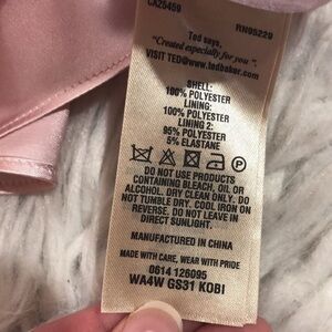 This elegant mini skirt by Ted Baker showcases a soft pink color with delicate pleats, perfect for cocktail occasions. The A-line silhouette offers a flattering fit, while the structured fabric maintains its shape beautifully. Ideal for making a stylish impression at any special event.