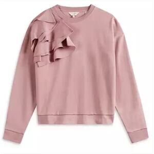 Ted Baker Pink Ruffled Crewneck Sweatshirt Sz 2