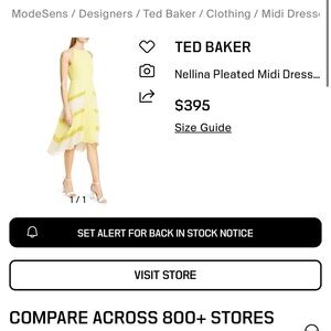 Ted Baker Pleated Nellina Midi yellow dress size 2 / US 6 nwot