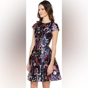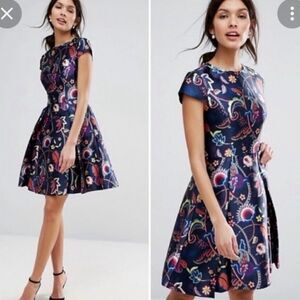 Ted Baker Pluxam Mini Blue Dress Folk Foliage Skater Size 2