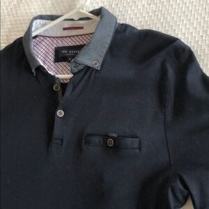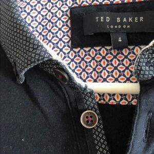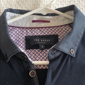 Navy Blue Color with pattern on collar and small bit of pattern material out of pocket.