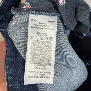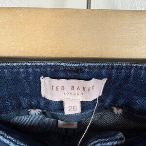Ted Baker Pralina Embroidered Jeans Size 26 Floral Cuff Slim Leg Mid Rise Denim