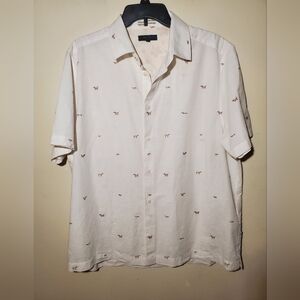 Ted Baker Pruden Dog Print Cotton Linen Blend Button Up