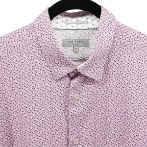Ted Baker Purple Leaf Print Casual Button Down Shirt Country Club Summer Size S