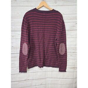 Ted Baker Purple Red Striped Crewneck Wool Blend Sweater Men's 6/Large Elbow