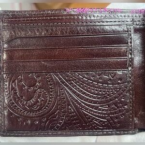 Ted Baker RARE, leather wallet with unique detailing & fabulous silky fabr lining! This wallet is really beautiful! The leather is soft and the design is great. There is a pocket on the exterior. The interior detailing is FANTASTIC; so pretty! There are 8 card slots and each side has a slip pocket. There are 2 full bill folds! All pockets have the silky fabric lining! There are small scratches that are shown in the pictures. These are part of the description.