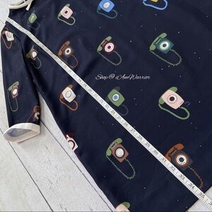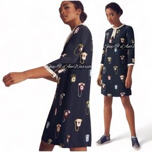 How adorable is this whimsical Ted Baker navy shift dress w/ colorful rotary telephone print all over? Both retro & modern, this dress has playful vibes for both work or weekend depending on styling. White contrast trim & neck bow detail & 3/4 sleeves. Rare collectors piece! Retailed at $279. Size 3=US8.