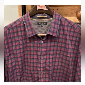 Ted Baker RED GRAY CHECKERED Button Up Shirt Men’s Size 6 UK 44 Cotton long Slv