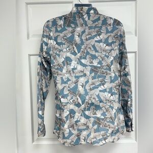 Ted Baker Ramseys Button Down Shirt Men’s XL (Ted 5) Blue Palm Leaf Flip Cuff
